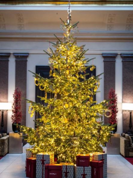 Las tres exclusivas propiedades del sello hotelero ubicadas en Berlín, Frankfurt y Múnich hacen un alarde de elegancia con sus decoraciones festivas, para las cuales realizaron una colaboración con Salvatore Ferragamo. Con ello se dio vida a estos árboles de Navidad finamente decorados mediante elementos dorados.