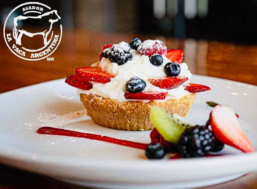 Una de las glorias del ASADOR LA VACA ARGENTINA es sin duda su alta repostería exquisita y variada y para muestra pueden cerrar con broche dulce esta impresionante experiencia gastronómica un postre “Rey de reyes” un cheese cake de fresas perfectamente balanceado en lo dulce con una vista espectacular y un sabor festivo inolvidable.