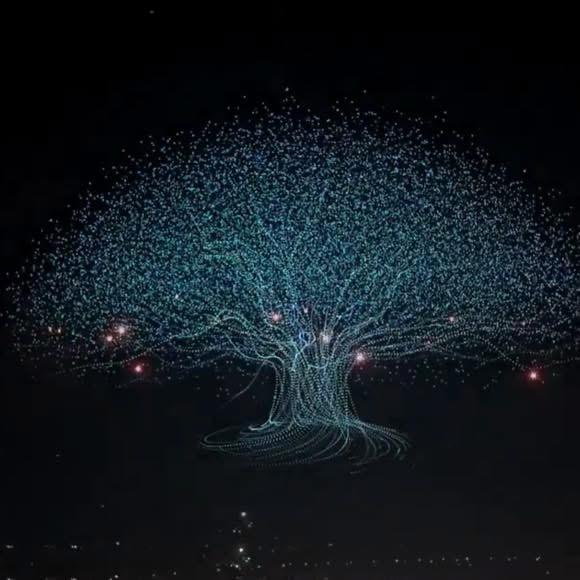 La formación incluyó figuras como una doble hélice de ADN, flores que se abrían en el cielo y una estructura imponente titulada “Árbol del Cielo”. Global Times+1