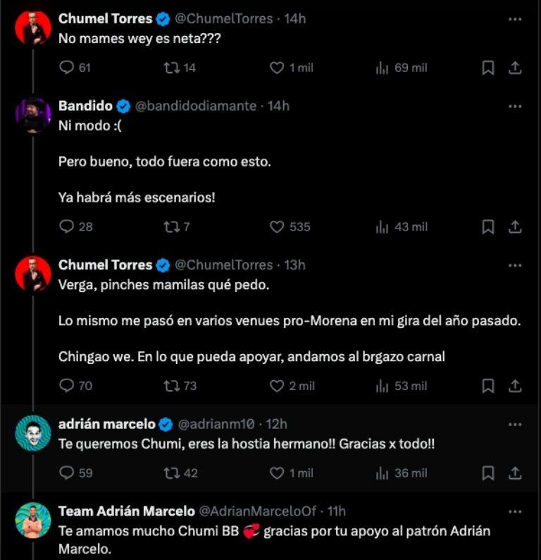 El comediante Chumel Torres ha expresado su apoyo incondicional a Adrián Marcelo y La Mole tras la cancelación de su evento en la Ciudad de México. La decisión de cancelar el show ha generado una gran polémica, y Chumel no dudó en solidarizarse con sus compañeros del mundo del entretenimiento.