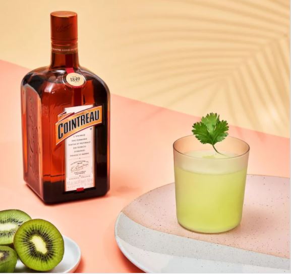 Macera el cilantro y el kiwi dentro del shaker. Después, añade el resto de los ingredientes y hielo. Agita hasta que el recipiente esté frío. Cuela y sirve en un vaso en las rocas y adorna con hojas de cilantro.