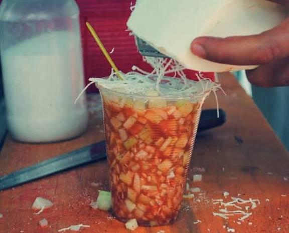 Está hecho a base de vinagre de piña o manzana, jícama rallada, cebolla morada, pepino, queso fresco y chile en polvo, lo que lo convierte en un platillo refrescante y perfecto para los días calurosos.