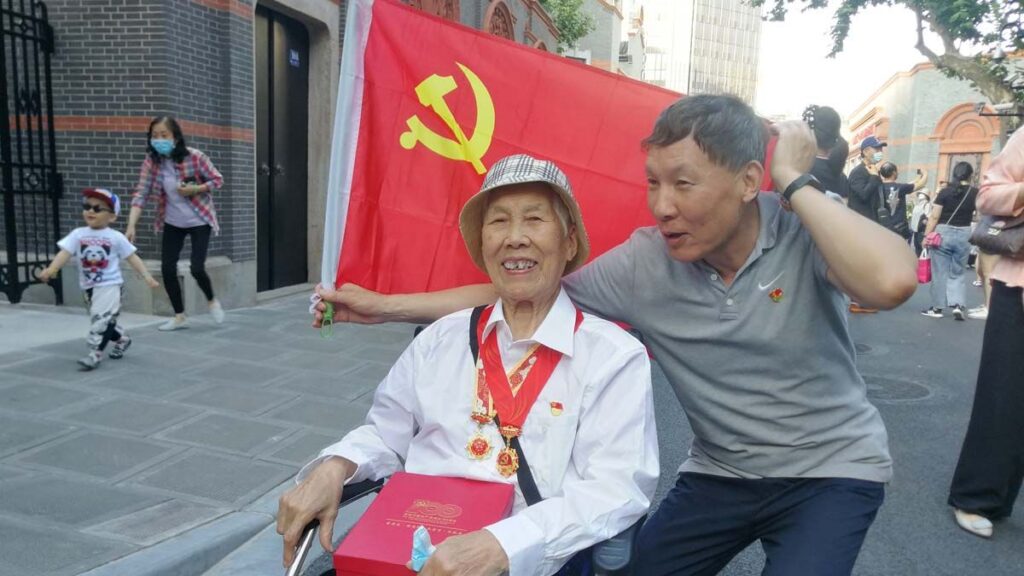 Al caminar con dificultad, Li Yongnian es apoyado por sus dos hijas mientras mira las fotos de la gran exposición que se montó en Shanghai para el centenario del Partido Comunista de China (PCCh), que se celebró el 1 de julio. A la edad de 90 años, Li presenció la enorme transformación de China durante ese periodo, y gran parte de la historia que se cuenta allí, en el lugar donde se fundó el partido, está entrelazada con la suya.