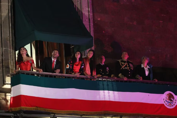 Fueron 21 «vivas» y 4 «mueras» en total. En punto de las 22:58 horas, el mandatario salió de su oficina y a las 23:00 horas recibió la bandera para después salir al balcón de Palacio Nacional.