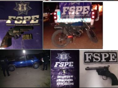 En el municipio de San Luis de la Paz, en la comunidad la Zahúrda se detuvieron a 5 personas con 2 vehículos con reporte de robo; en Pénjamo se aseguró un arma y 21 cartuchos, un cargador, 93 dosis de drogas sintéticas y 20 de marihuana, en la comunidad de Churipitzeo; y en la colonia Fundadores del municipio de Salvatierra, se aseguraron 254 dosis de drogas sintéticas y un vehículo con reporte.
