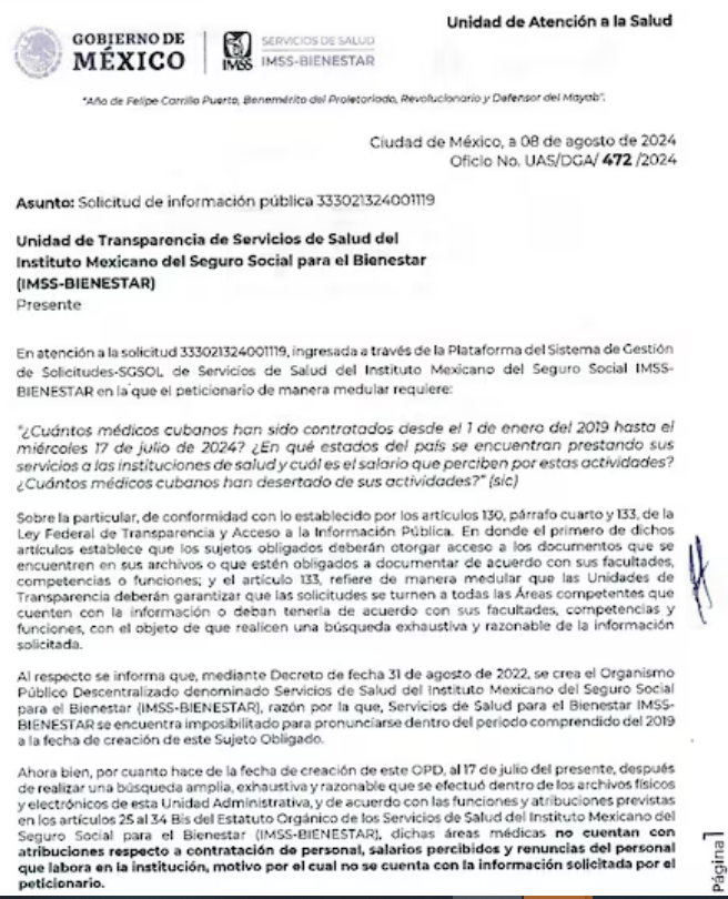 A pesar de las grandes sumas pagadas, el IMSS no tiene detalles sobre las condiciones laborales de estos médicos ni sobre las unidades de salud en las que están asignados, lo cual ha generado dudas sobre la transparencia y el uso de estos recursos.