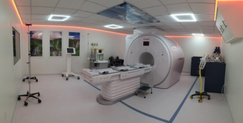 Incluye programas de aplicación clínica de vanguardia en cardiología, está equipado con máquina de anestesia, monitor de signos vitales, camillas, inyector de medio de contraste, sillas de ruedas y accesorios antimagnético.
