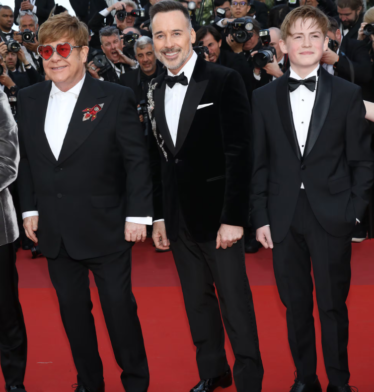 De izquierda a derecha, Elton John, su marido David Furnish y Kit Connor, en el estreno de ‘Rocketman’ en el Festival de Cine de Cannes. Foto: Redes Sociales