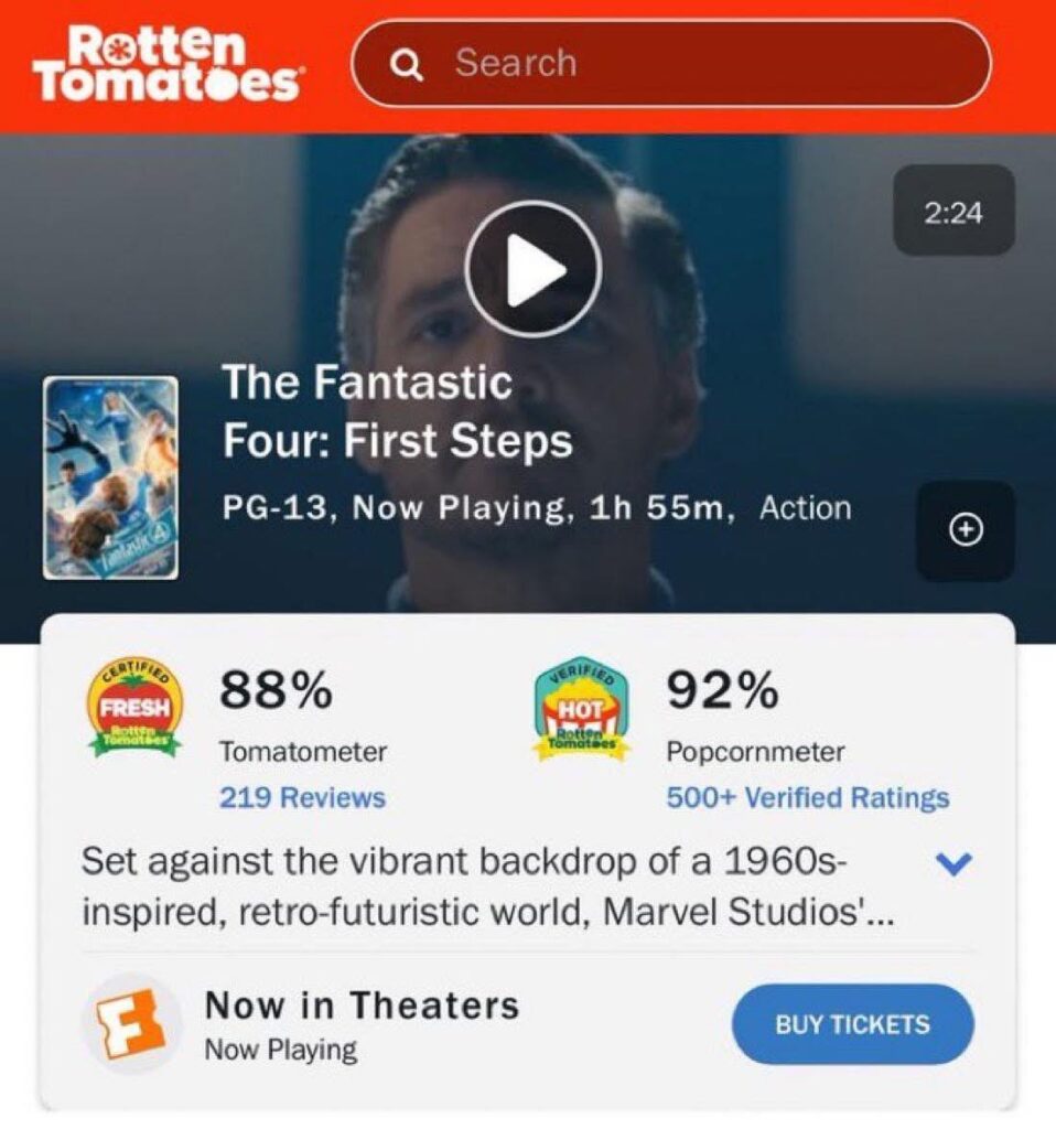 La esperada película de Los 4 Fantásticos de Marvel Studios finalmente ha llegado a los cines y la respuesta del público ha sido arrolladora. Con un impresionante 92% de calificación por parte de la audiencia en Rotten Tomatoes, esta nueva entrega del MCU parece haber conquistado el corazón de los fans.