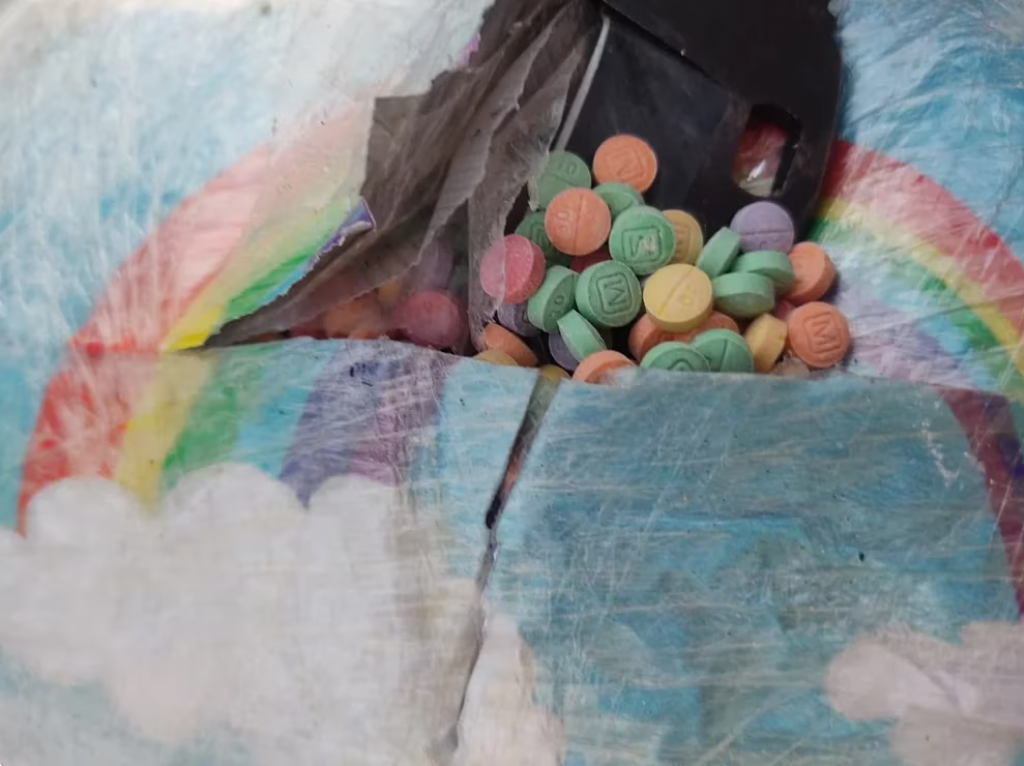 En dicho lugar, las fuerzas castrenses aseguraron 629 mil 138 pastillas de fentanilo, con un peso aproximado de más de 68 toneladas y media, así como 128,03 kilogramos de fentanilo granulado.