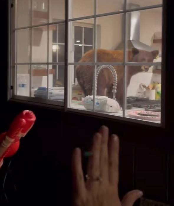 De acuerdo con los reportes, la familia ingresó a su hogar y escuchó ruidos extraños en la cocina. Al acercarse, se encontraron con un oso negro revisando bolsas y alacenas en busca de comida. Lejos de mostrarse agresivo, el animal parecía concentrado únicamente en saciar su hambre, lo que dio pie a una escena tan insólita como peligrosa.