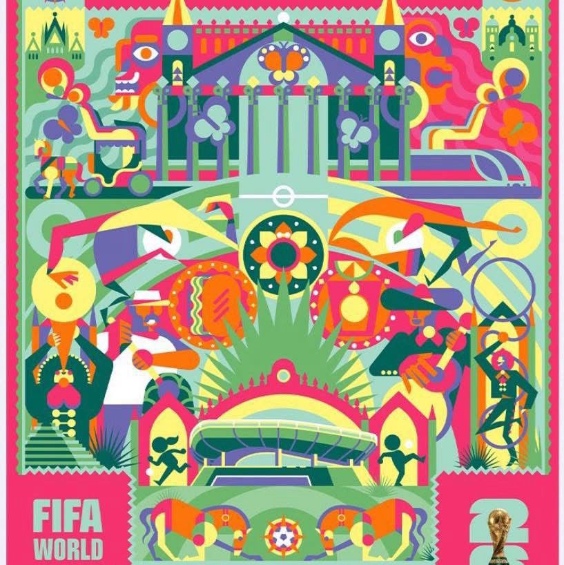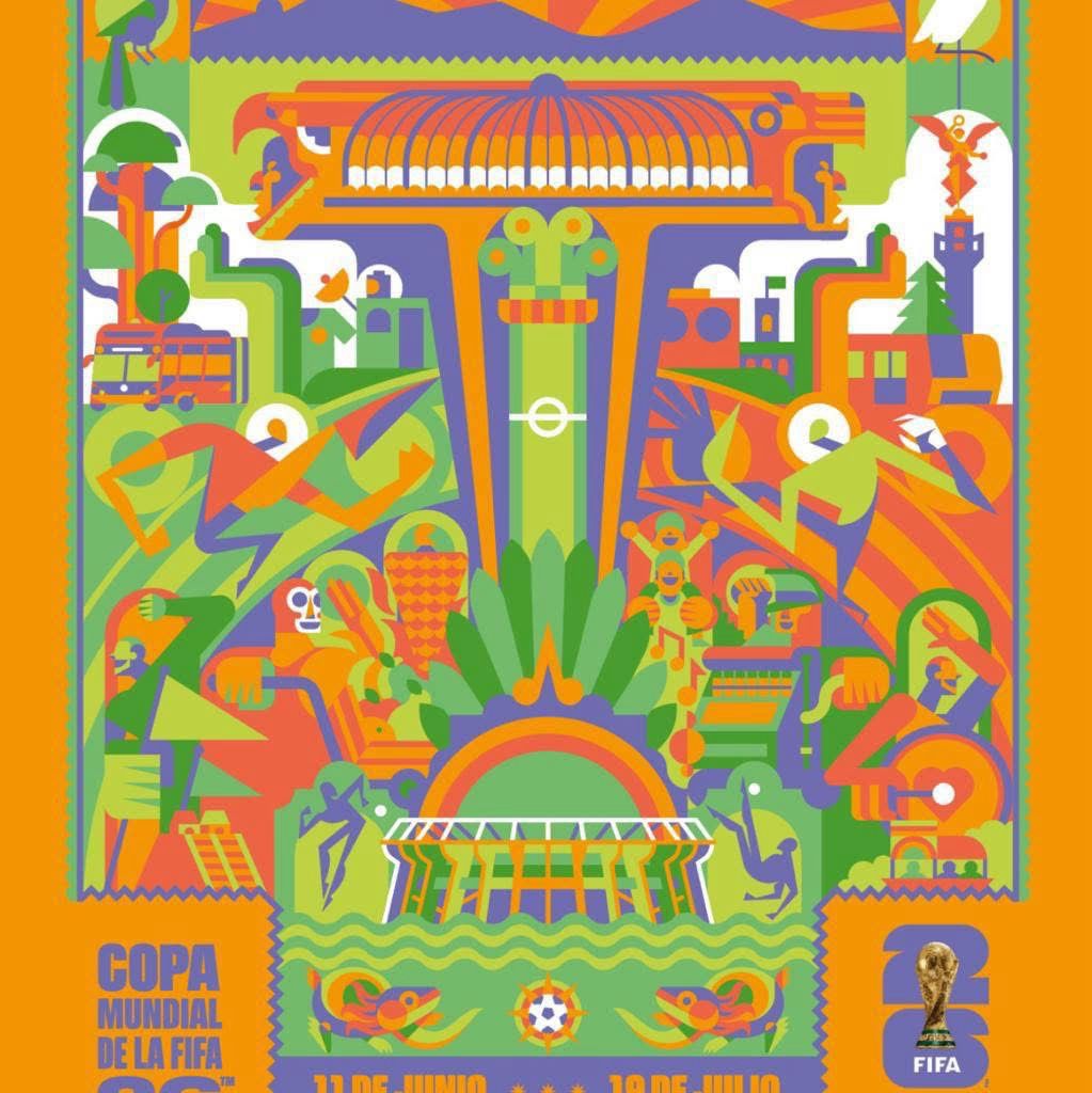 Cada póster refleja la identidad futbolera y cultural de su ciudad sede. En el póster oficial del Mundial 2026 en Ciudad de México, se observa una reinterpretación del Estadio Azteca rodeado de patrones que evocan la arquitectura prehispánica y el caos vibrante de la capital. La paleta cromática se inspira en los murales de Diego Rivera y en los atardeceres desde Xochimilco hasta Tlatelolco.