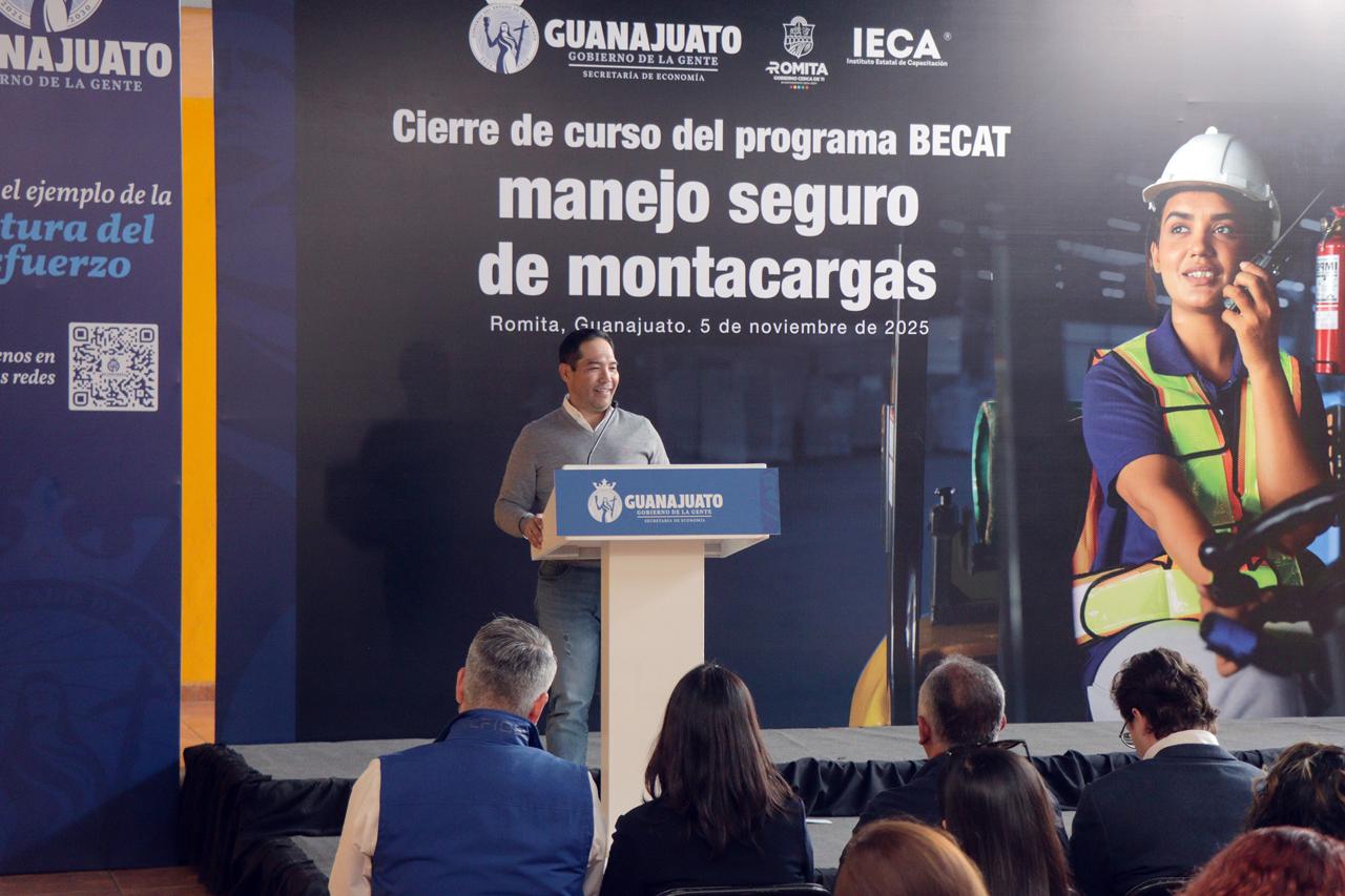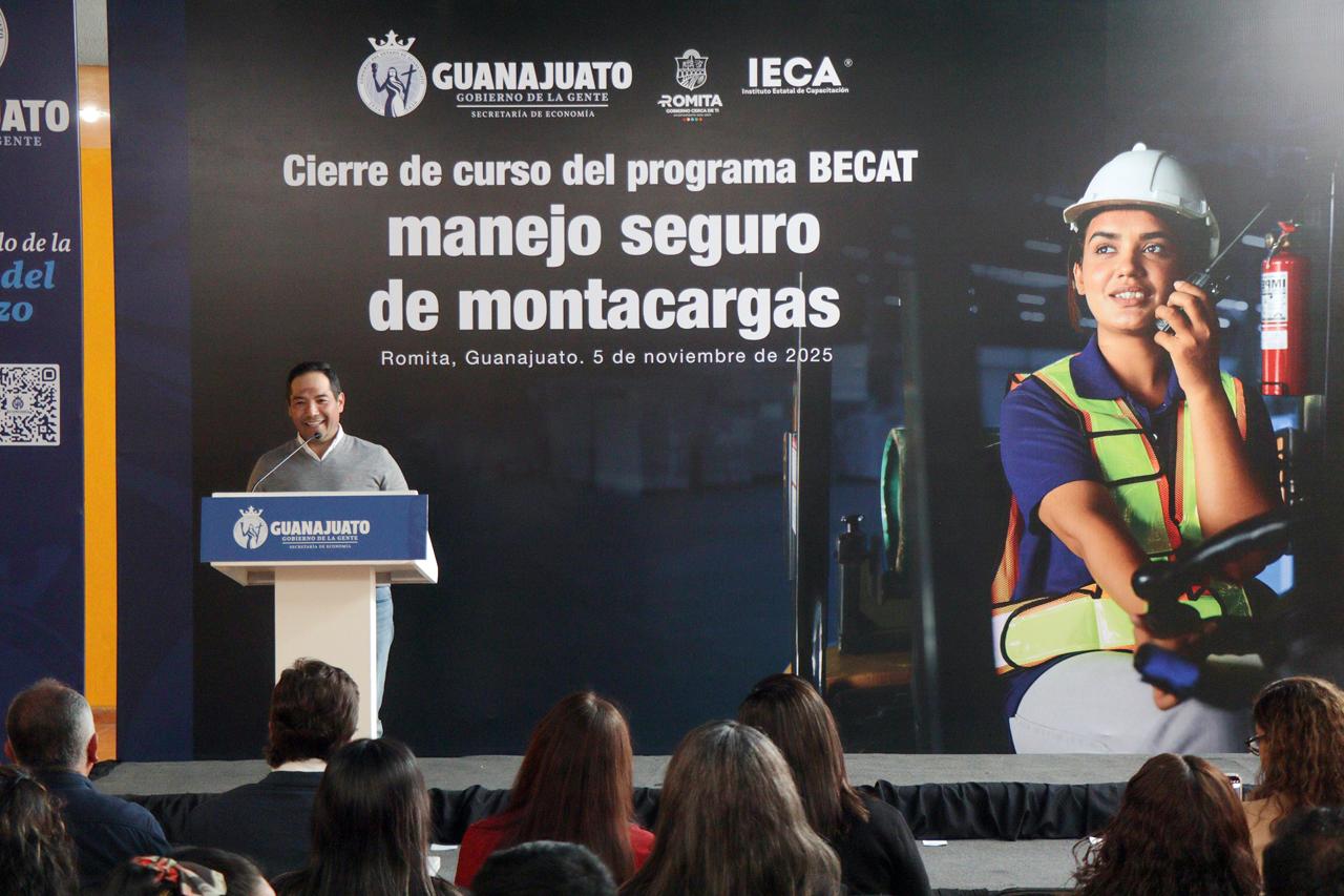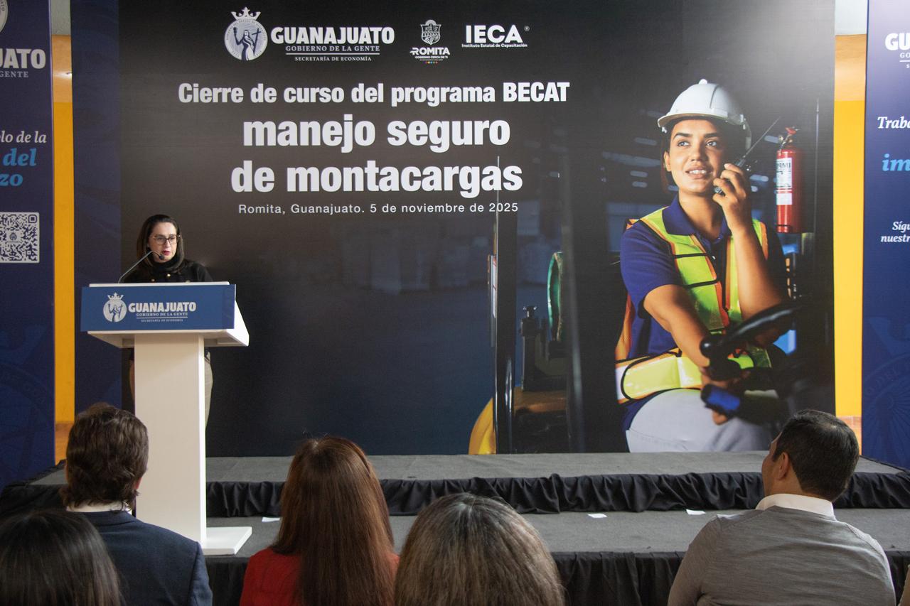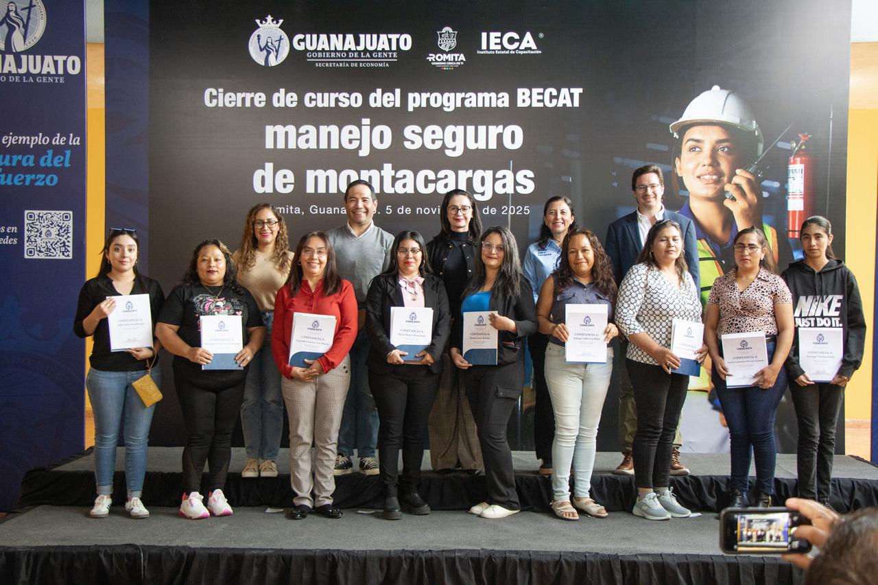 Con la participación de 13 mujeres graduadas, el curso “Manejo Seguro de Montacargas para Mujeres” forma parte del Programa de Capacitación para el Empleo, impulsado por la Secretaría de Economía del Estado, el Gobierno Municipal de Romita y el IECA.