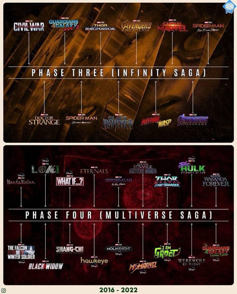 Con la publicación de las nuevas gráficas oficiales, podemos ver de un vistazo cómo están estructuradas todas las fases del MCU, desde el inicio hasta los planes del futuro cercano.